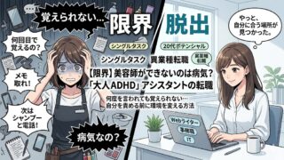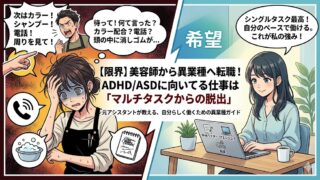 発達障害(ADHD/ASD)でも美容師になれる?美容室経営者や客の厳しい本音を元アシスタントが暴露。マルチタスクや人間関係など特性の壁に悩む人へ、1000円カットや異業種への転職など、時間と学費を無駄にしない生存戦略を徹底解説します。